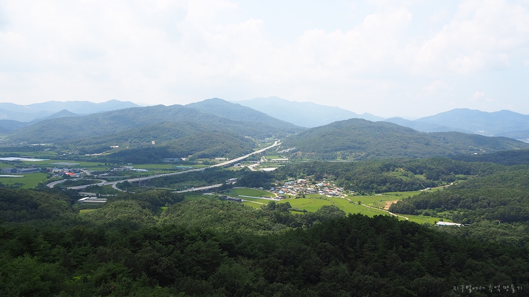 서산영덕 고속도로가 달리고 있고 뒤로 갑장산이 조망됩니다.