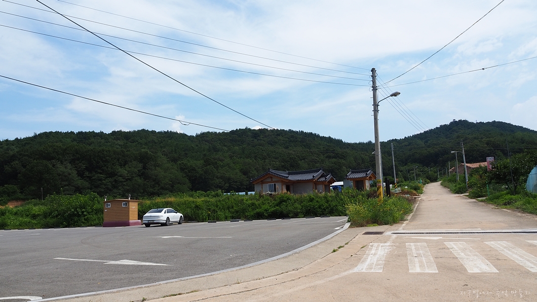 우측으로 보이는 도로를 따라 200m 정도 더 올라가면 산 아래 화장실이 있고 그 앞에도 서너 대 주차 공간이 있네요.