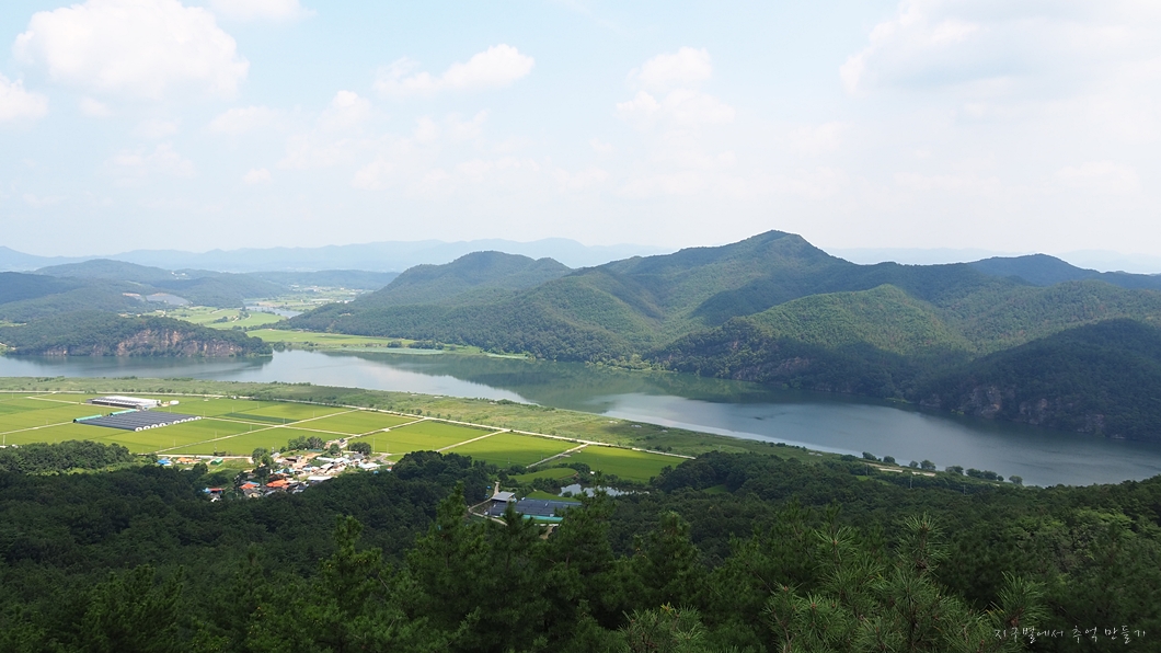 상류 쪽으로 보이는 산은 노음산 같습니다.