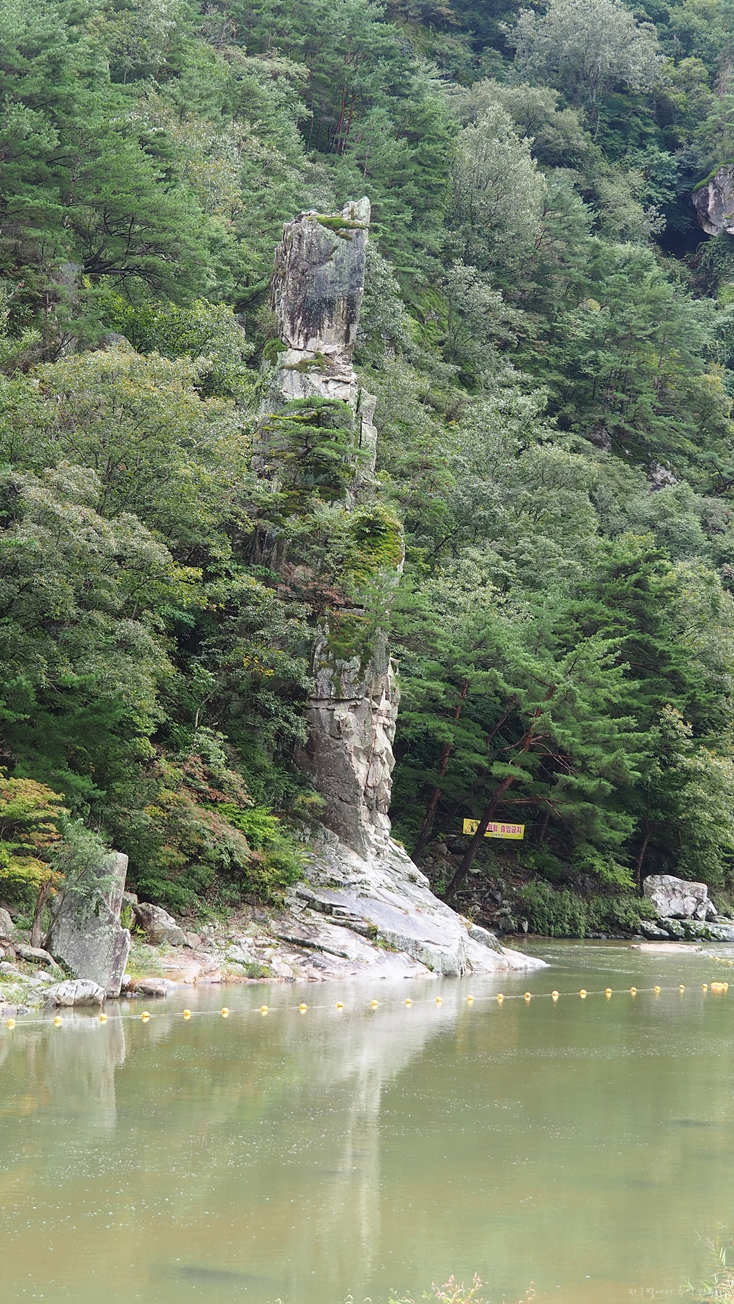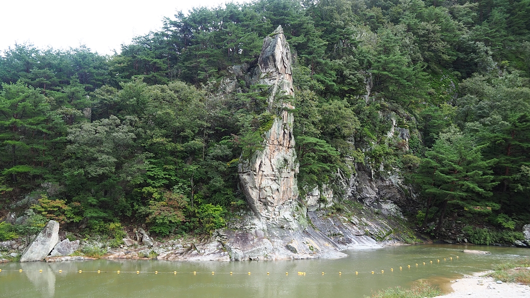30여 m 높이의 괴암이 우뚝 솟아 있는데 보는 방향에 따라 여러 가지 모습이 되네요.