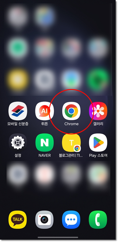 1. 휴대폰의 어플에서 구글 크롬으로 들어갑니다.(크롬 어플이 깔려있지 않다면 구글 플레이 스토어 들어가서 다운 받습니다.)