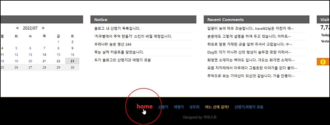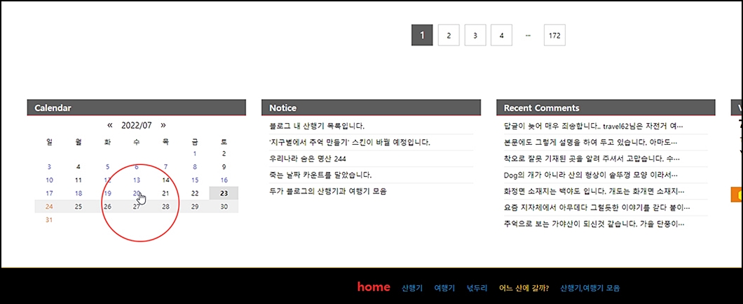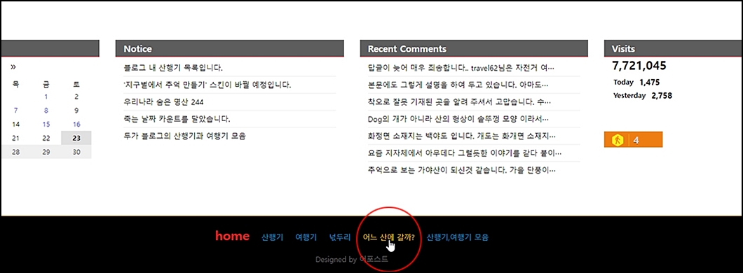 ⑤. 좌측 하단의 카렌다의 유색상 표시는 포스팅이 되어 있는 날짜입니다.