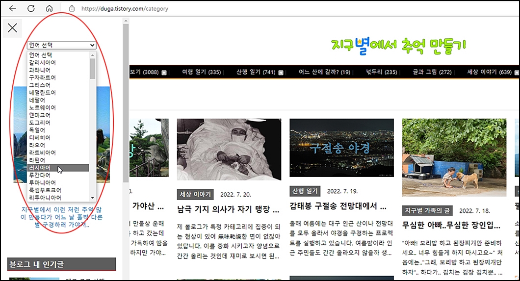 ⑩. 좌측 상단의 프로필 창을 연 다음 구글 번역으로 타 언어로 볼 수 있습니다.