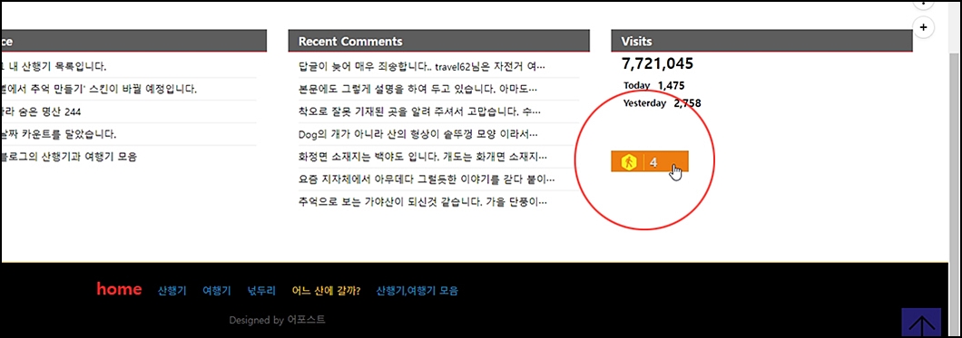 ④. 우측 아래 황색 딱지는 블로그 실시간 접속자 숫자입니다.