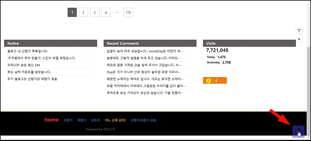 ⑦. 우측 맨 아래 바이올렛 화살표는 페이지 탑 이동 버튼입니다.
